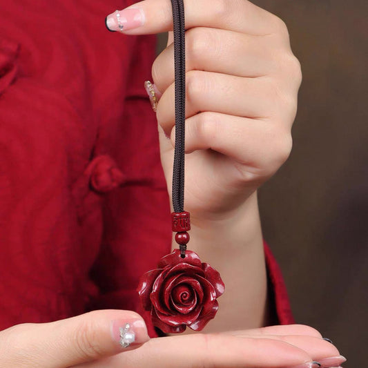 Cinnabar Rose Pendant Necklace for Love & Positive Energy - Bold Red Statement Necklace, Handcrafted Jewelry Gift for Women