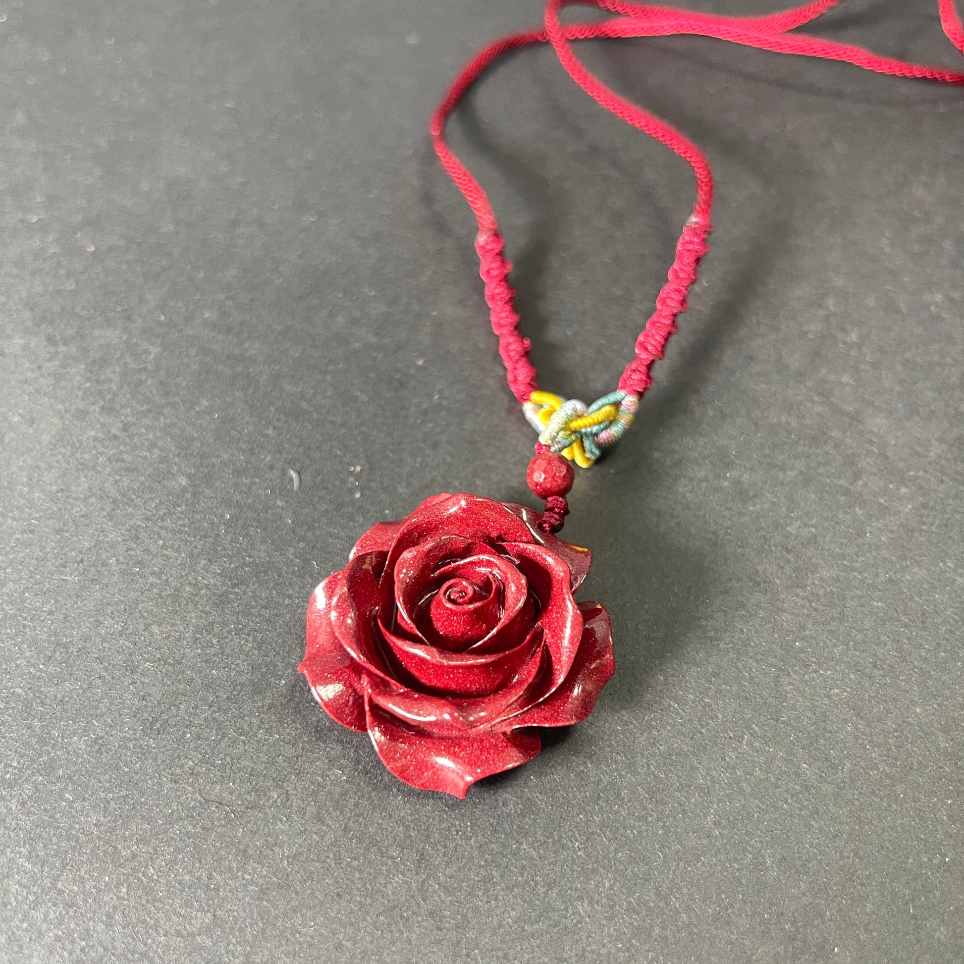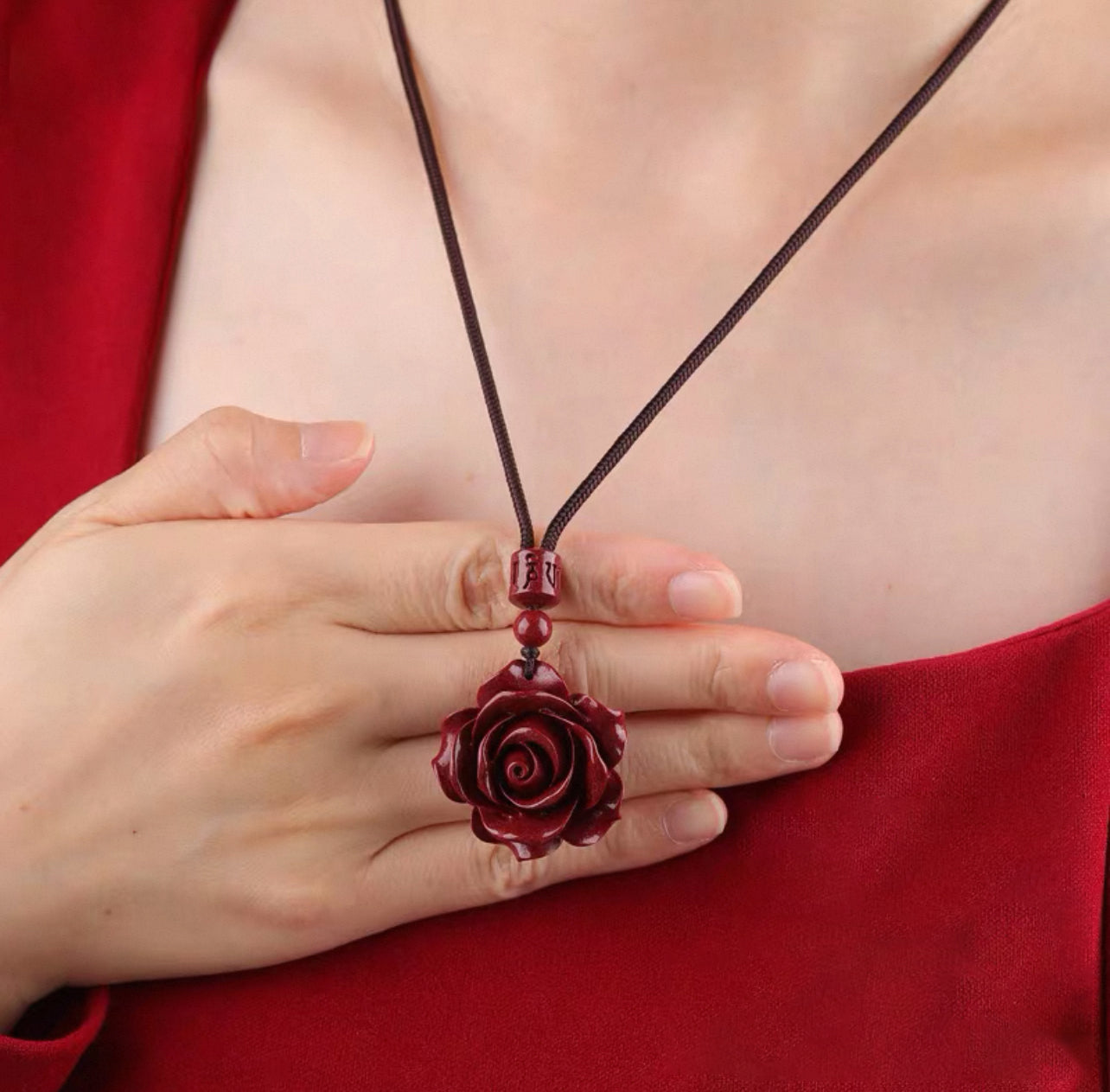 Cinnabar Rose Pendant Necklace for Love & Positive Energy - Bold Red Statement Necklace, Handcrafted Jewelry Gift for Women